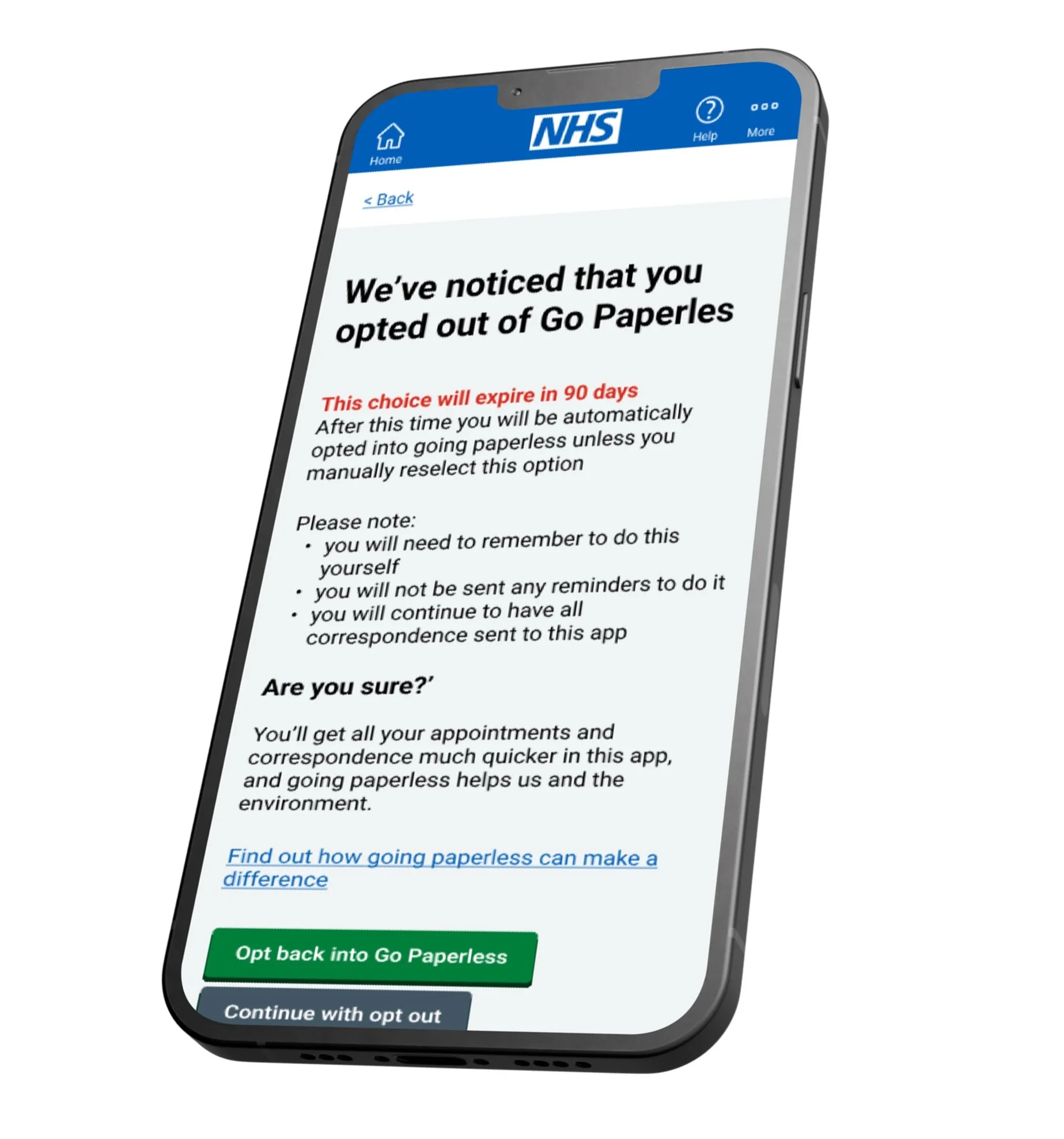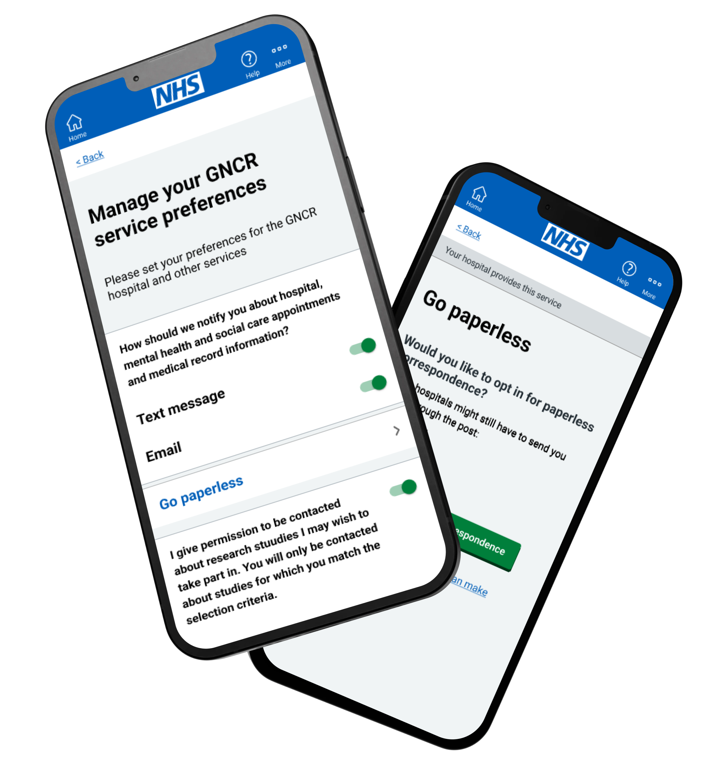 These screens were designed to help users manage how they receive healthcare updates and correspondence. The interface uses GDS patterns to present clear choices, toggles, and supporting guidance. Special attention was given to encouraging paperless opt-in through persuasive messaging and accessibility-conscious layout.